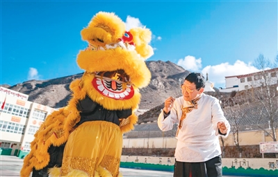 如今,邓巴阿尼腿脚已有不便,硕督狮子舞的接力棒传到了他的儿子洛松江村手里。“我很喜欢跳狮子舞。这个舞传承了很多年,每一段狮舞都是在讲述不同的故事,很有意思。”洛松江村说。
