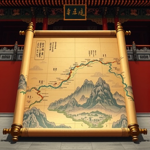 《丝路山水地图》。 中新社记者 杜洋 摄