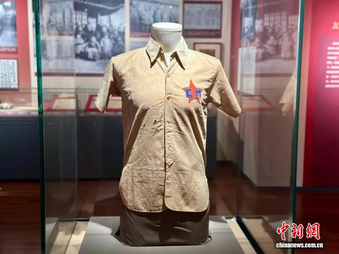 抗日战争时期新四军六师十八旅五十二团二营机炮连指导员姚永钦穿过的球衣。 中新网记者 王笈 摄